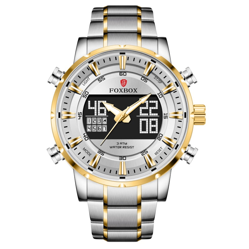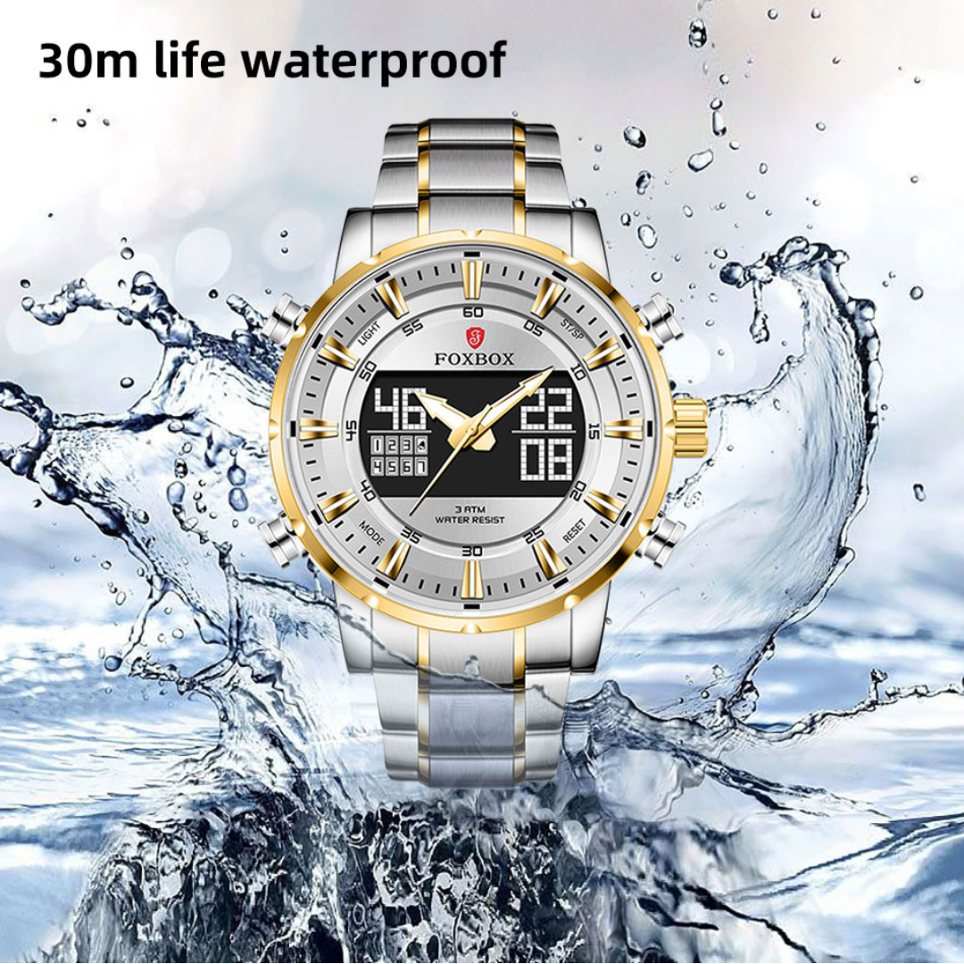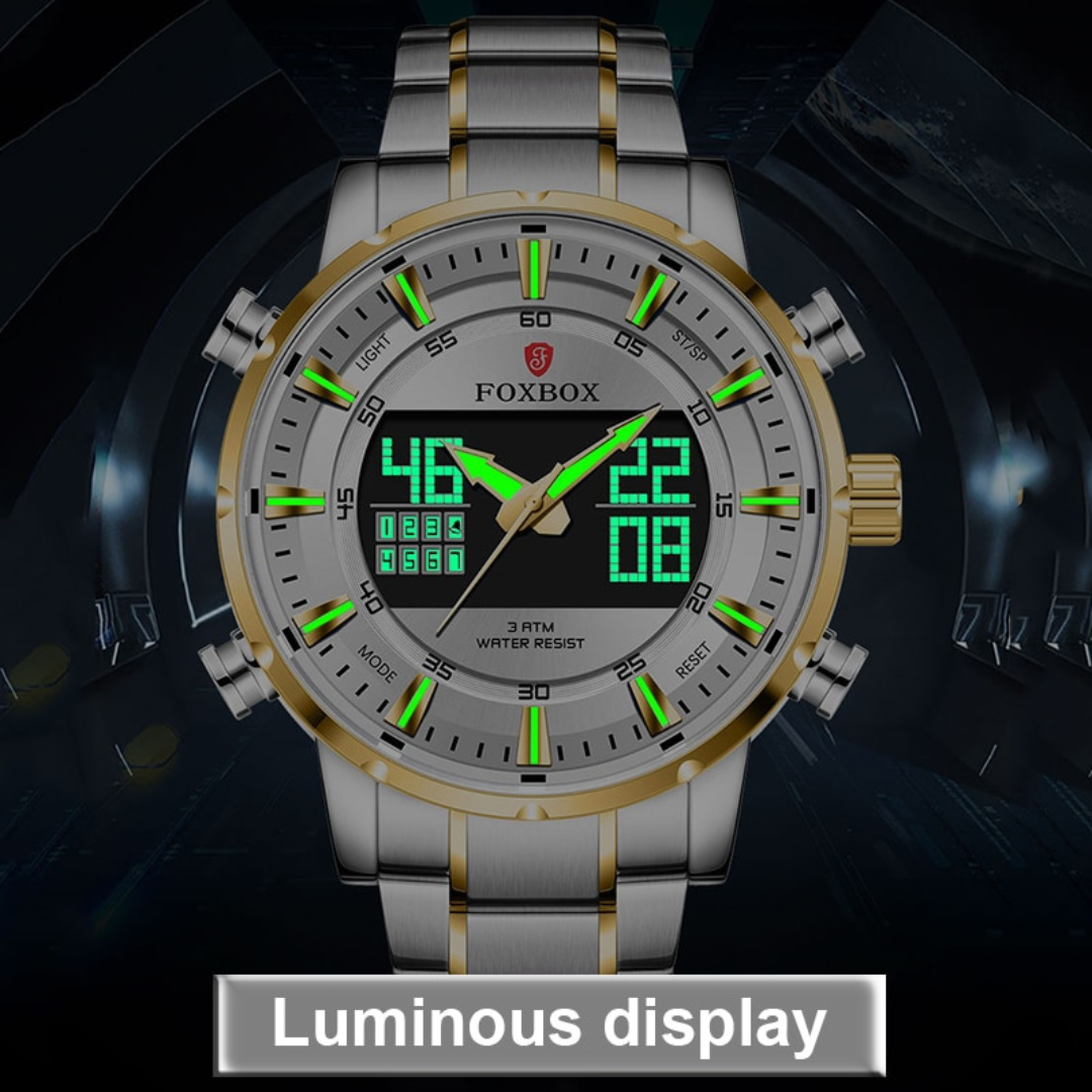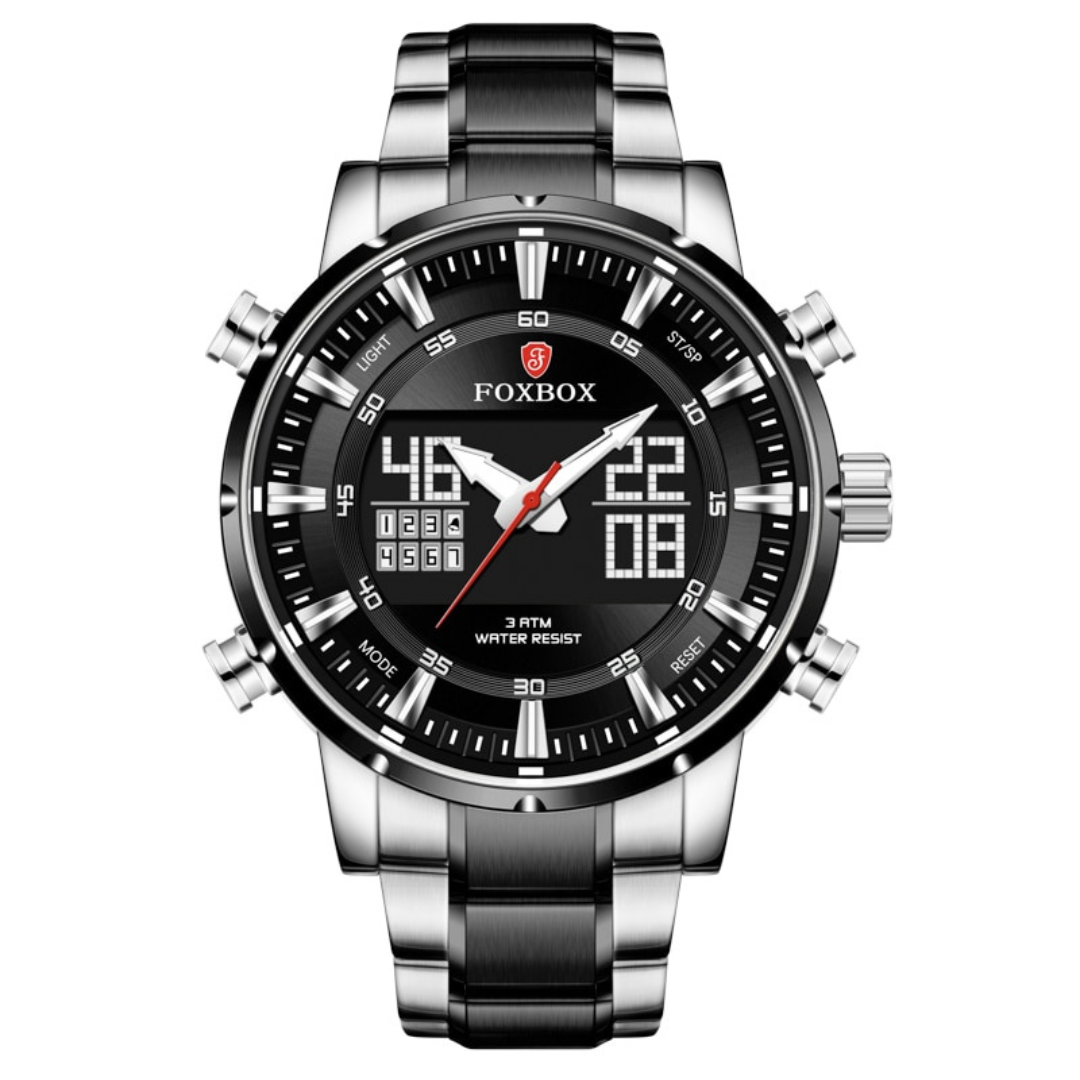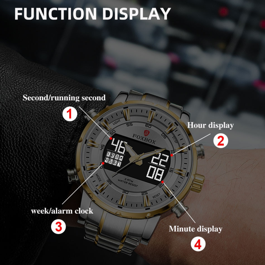 • Key Functions: LED Digital Display, Analog Hands, Chronograph, Alarm, Date, Luminous, Shock Resistant