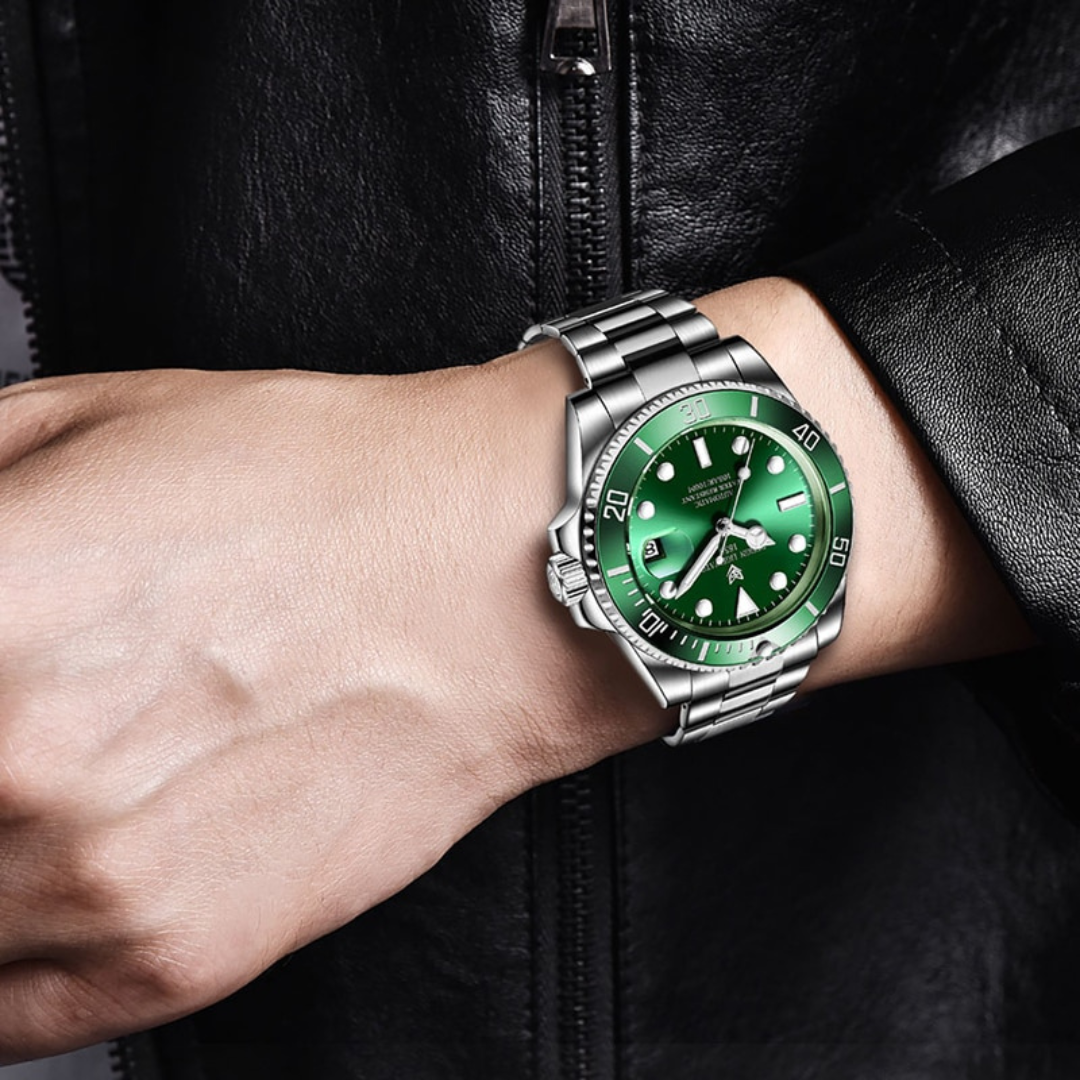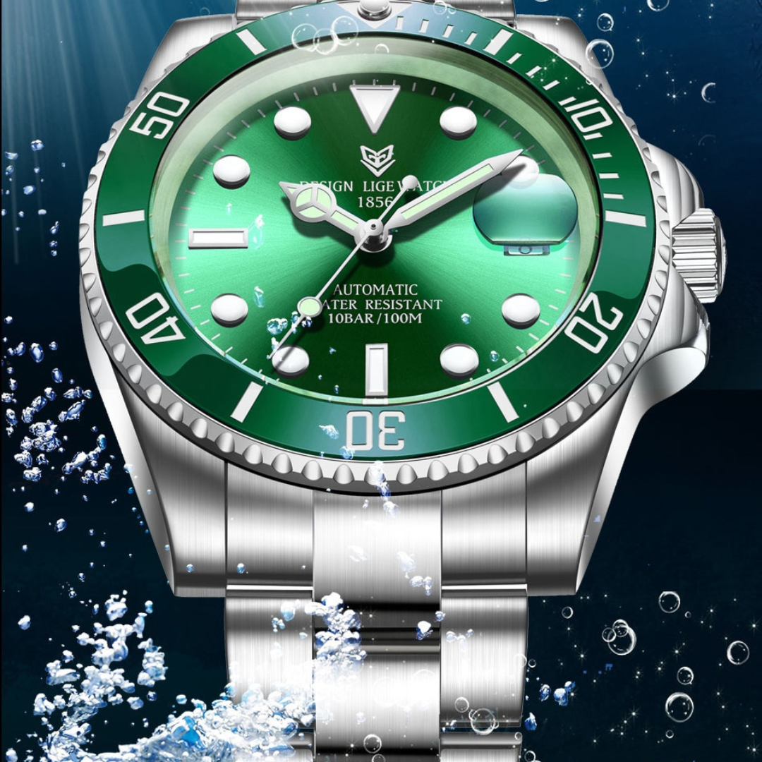 The LIGE Prime is a serious diver's watch built to professional standards. It combines a robust automatic movement with critical dive features: a 10 BAR (100m) water resistance rating, a unidirectional rotating bezel, and ultra-bright Swiss Super-LumiNova. With a complete calendar and sapphire crystal, it's a highly capable, feature-rich timepiece for those who demand performance both underwater and on land.