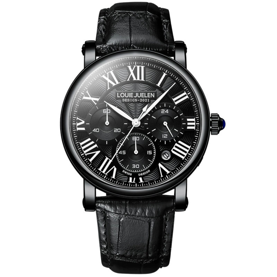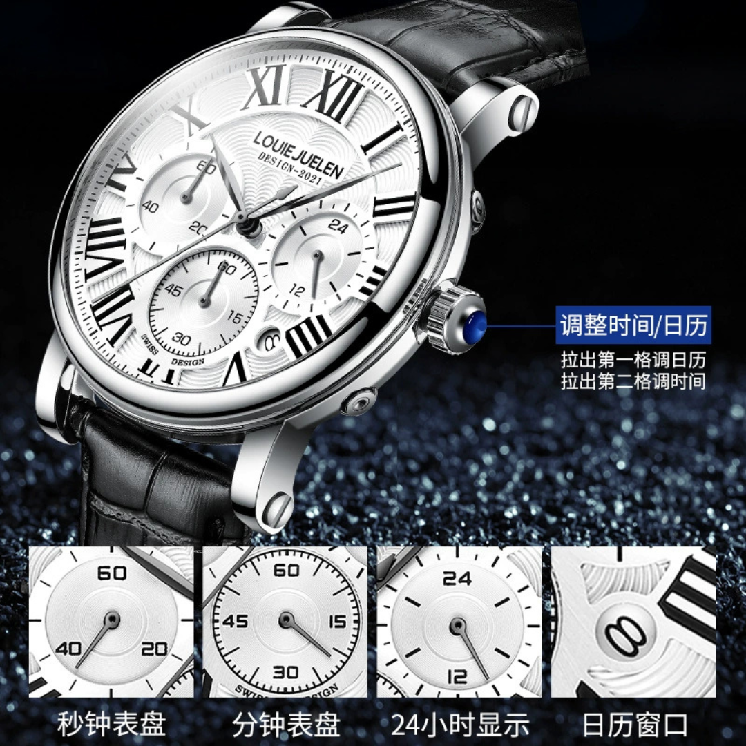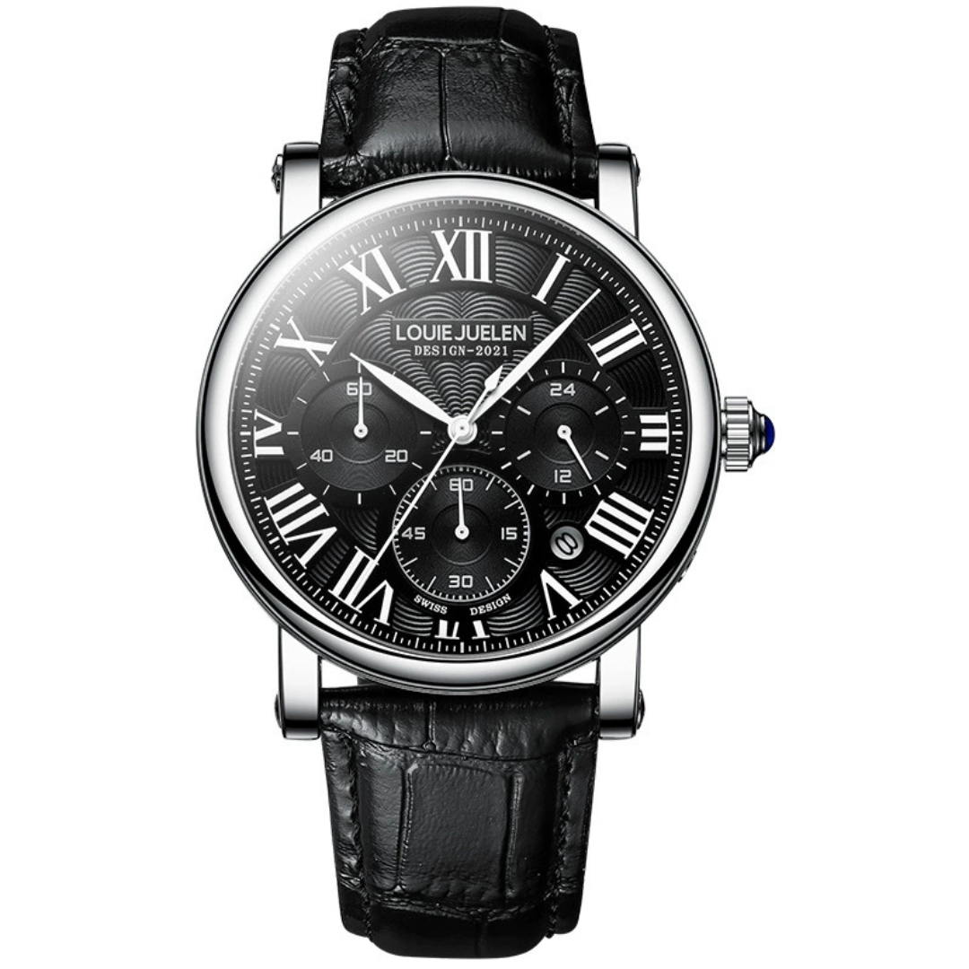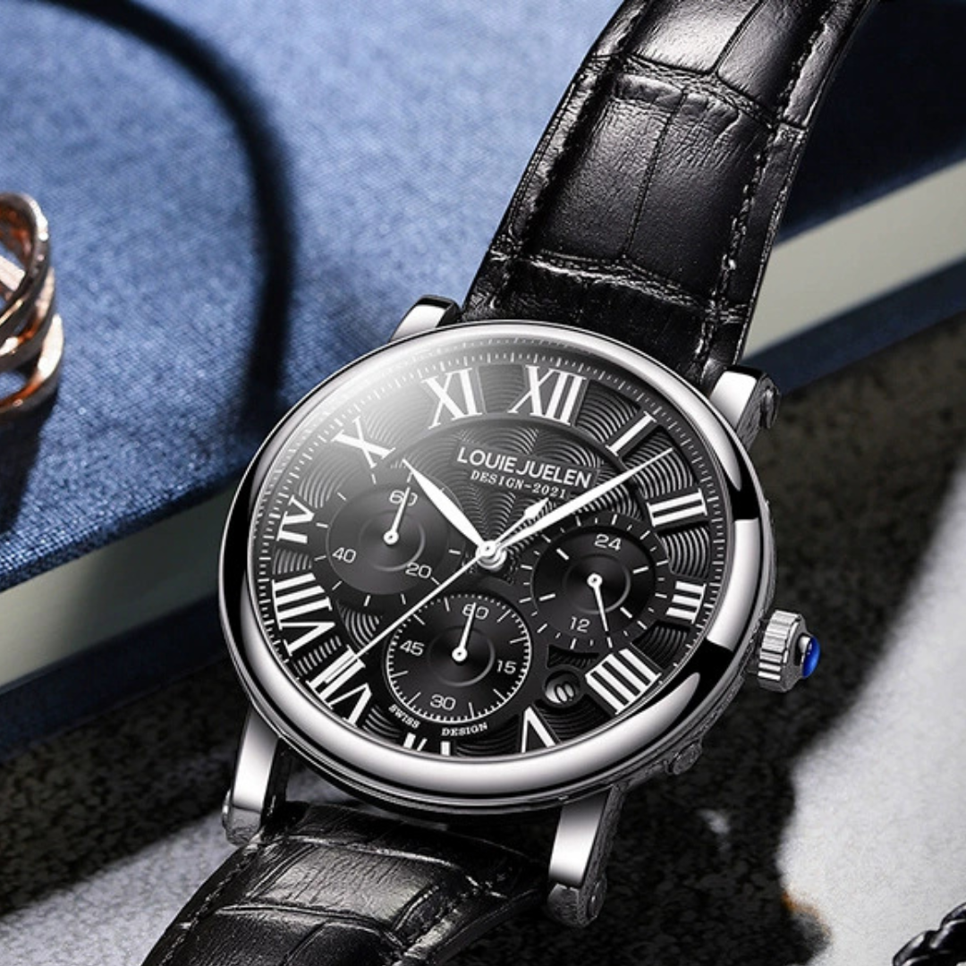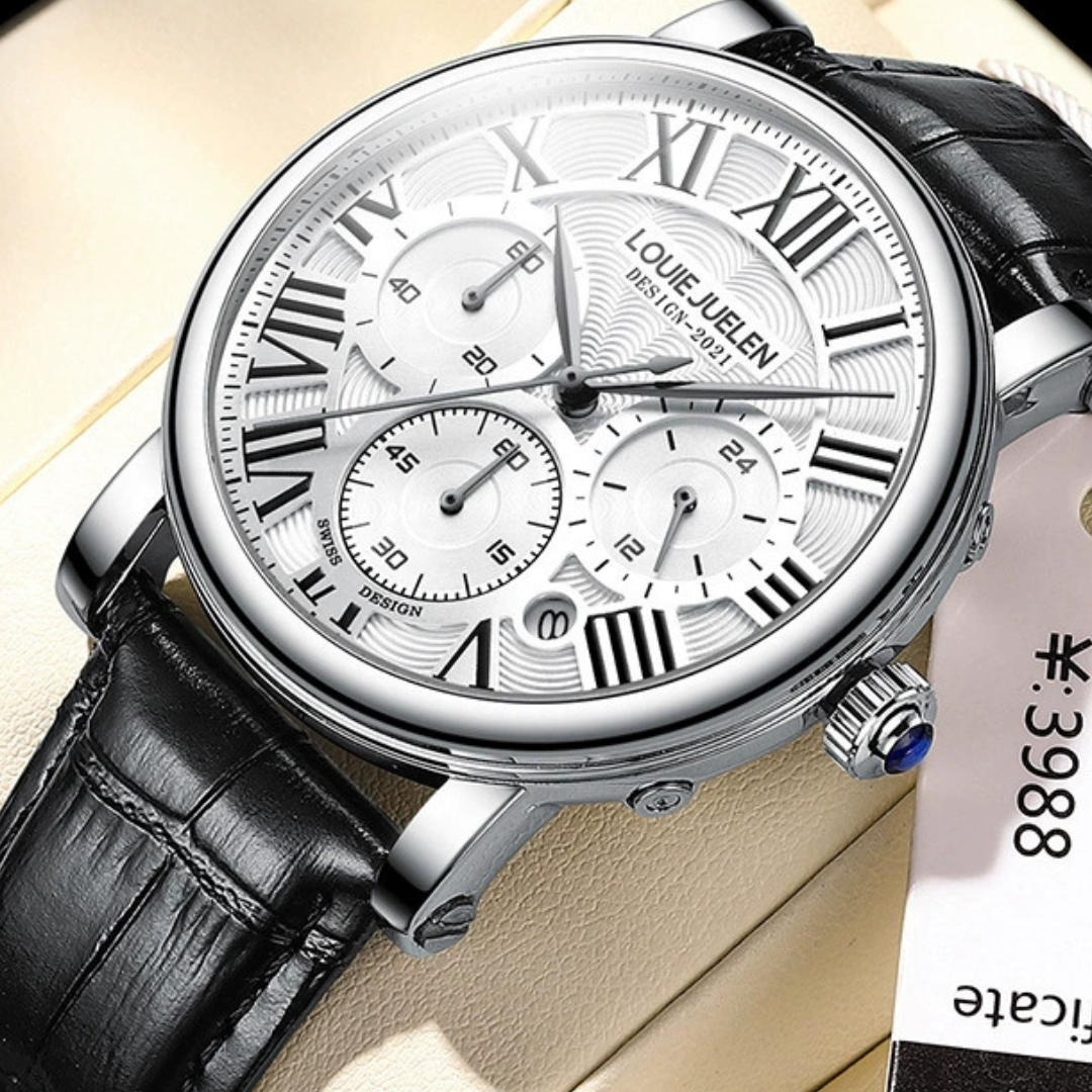 The louie juelen - Imperial combines classic design with detailed function. Its triple-subdial layout and genuine leather strap offer a versatile, sophisticated look for relaxed, everyday style.
