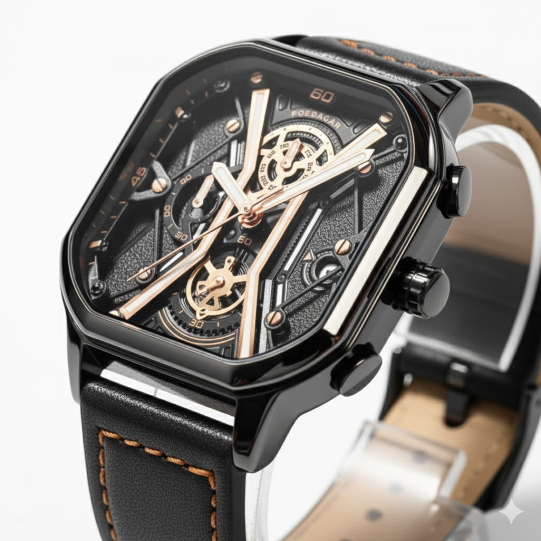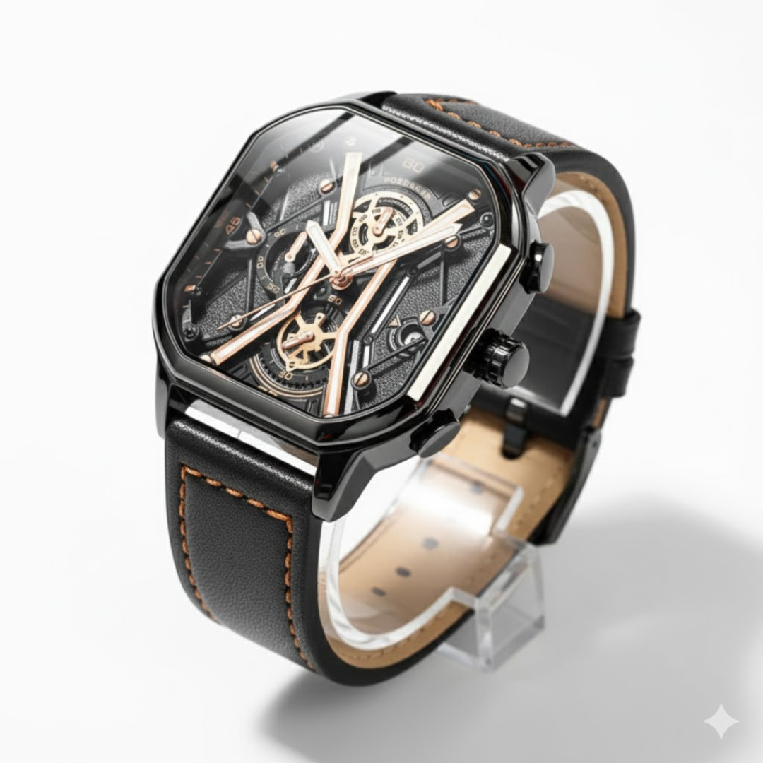 Enigma looks like a modern instrument without the complex price. Its quartz chronograph and calendar are precise, reliable, and built for real use. It transitions from structured work to casual exploration with intelligent style. It’s confident capability on the wrist, designed for those who solve problems and seek adventure.