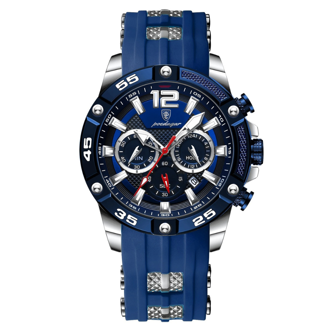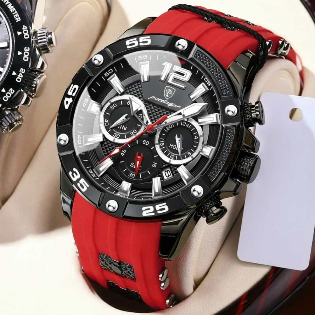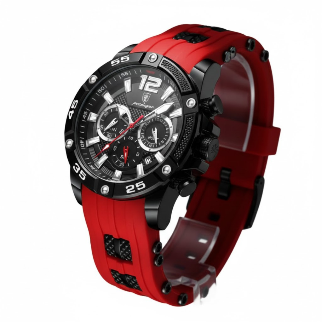 Future looks like a professional sports instrument without the athlete's budget. Its quartz chronograph movement is precise, rugged, and built to perform. It transitions from the gym to casual outings with purpose-built style. It’s confident readiness on the wrist, designed to be a tool that enhances your drive.