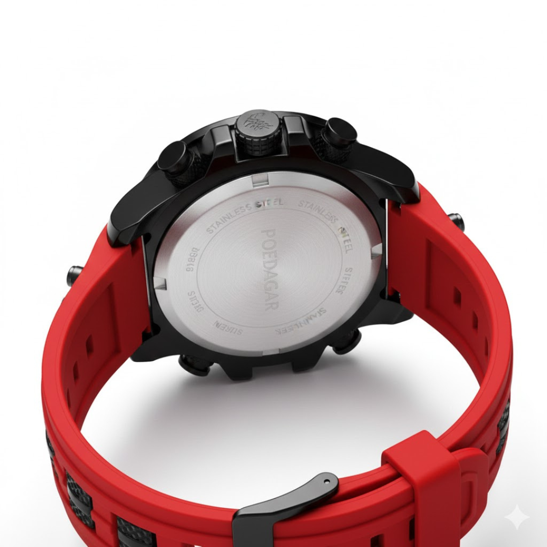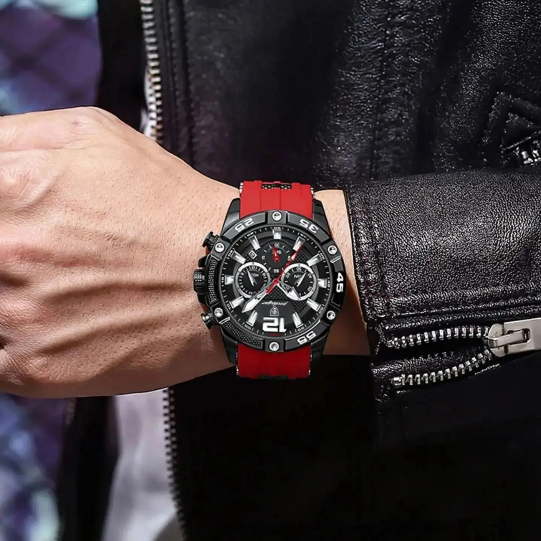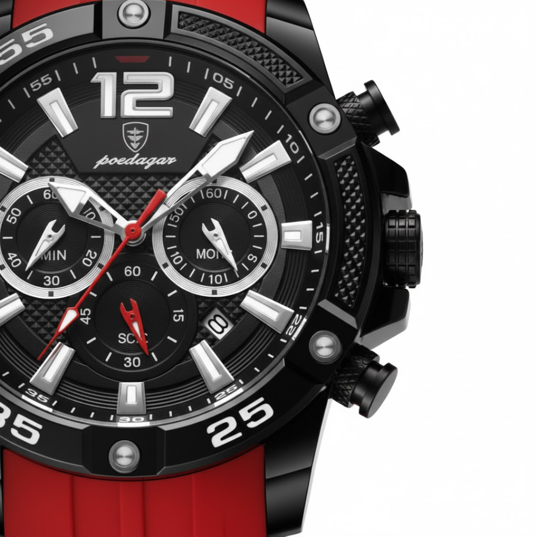 Future looks like a professional sports instrument without the athlete's budget. Its quartz chronograph movement is precise, rugged, and built to perform. It transitions from the gym to casual outings with purpose-built style. It’s confident readiness on the wrist, designed to be a tool that enhances your drive.