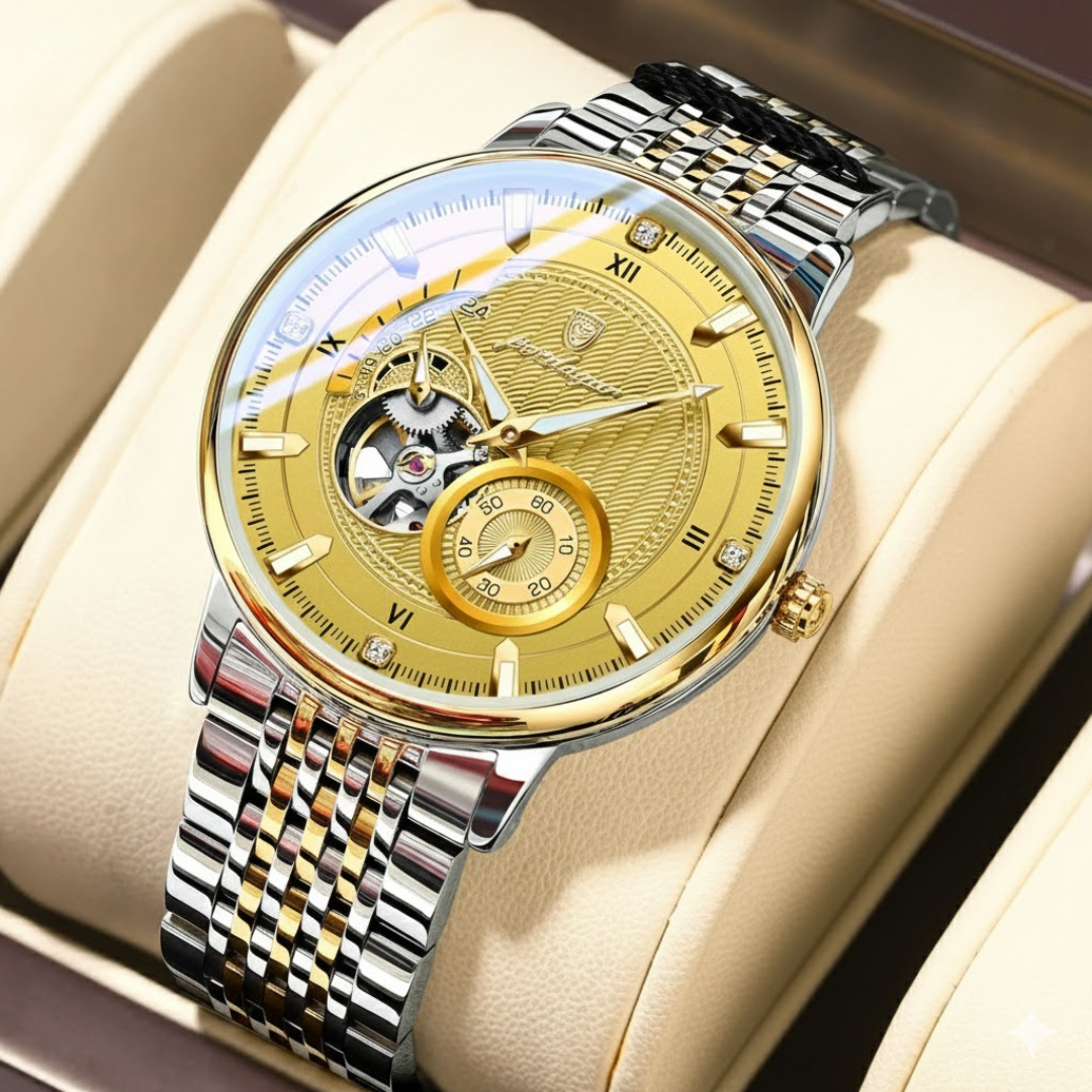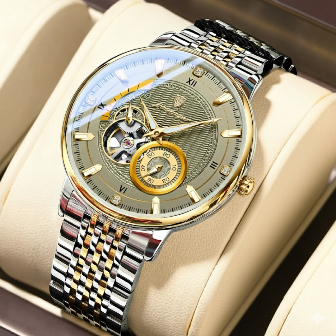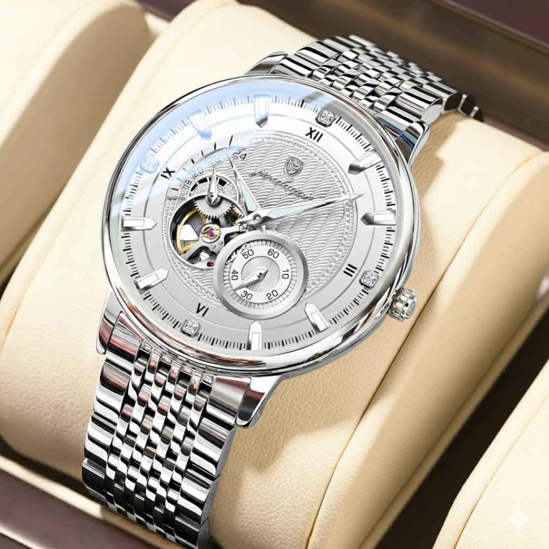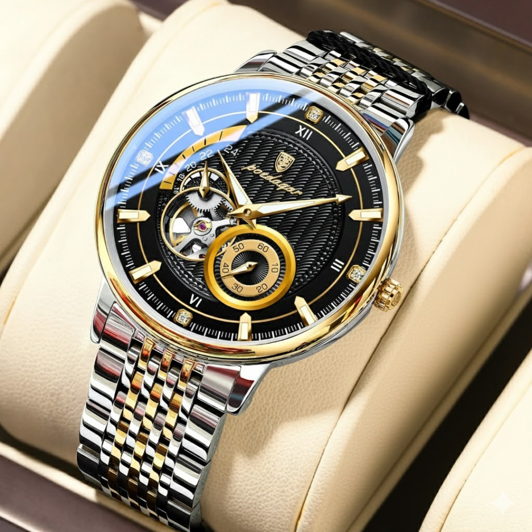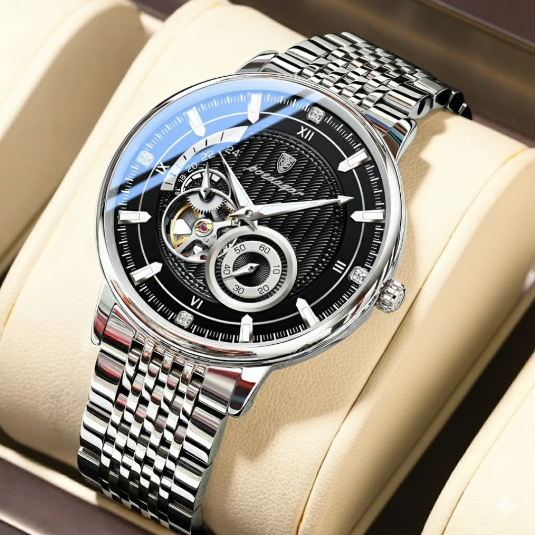 The solid steel case and scratch-resistant sapphire crystal guard its intricate mechanical heart. With 3 ATM water resistance, it confidently handles the elements. It delivers the unparalleled artistry and authoritative presence of a tourbillon timepiece, a true symbol of watchmaking excellence.