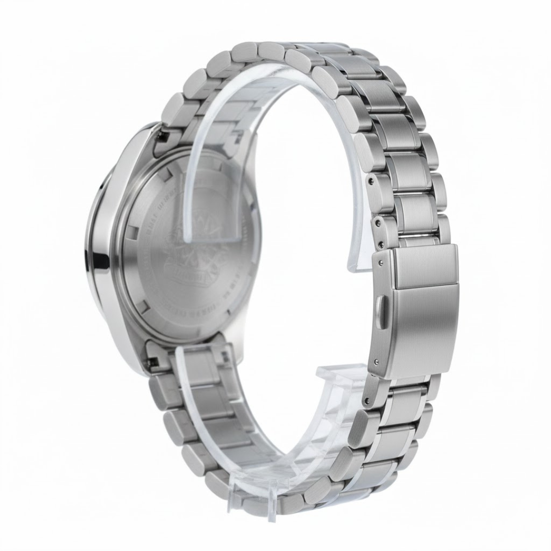 The stainless steel case and scratch-resistant Hardlex crystal guard against the rigors of exploration. With 3 ATM water resistance, it confidently handles rain, splashes, and the outdoors. It delivers the intelligent functionality and rugged character of a true celestial field watch.